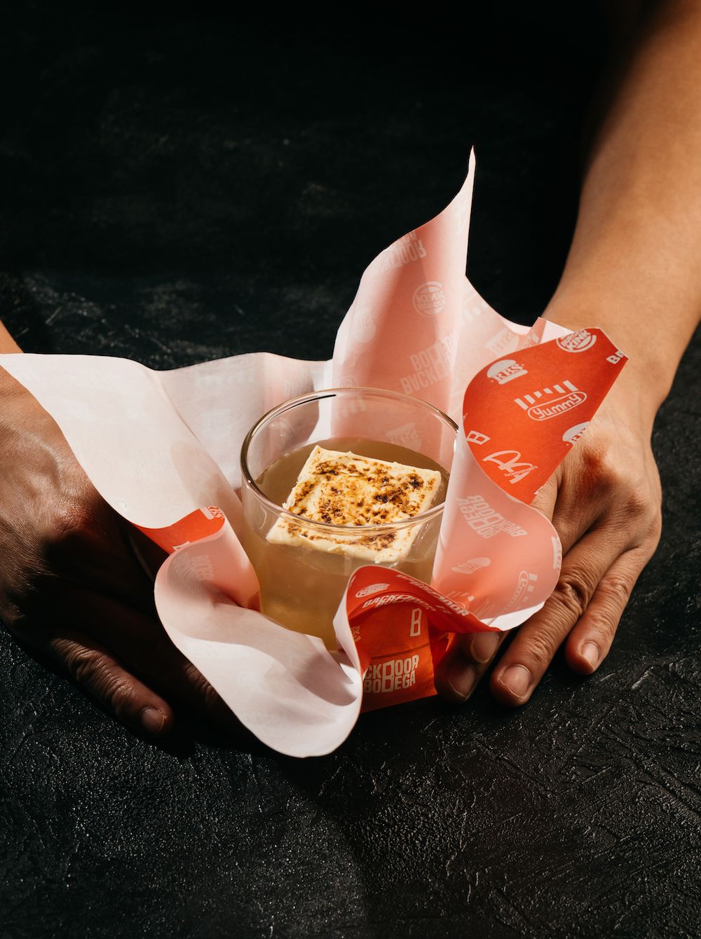 Backdoor Bodega’s R.B.S. (Ramly Burger Special) is a perfect example. Inspired by Malaysia’s iconic Ramly burger, the drink channels the flavor logic of the dish and extends the idea through presentation, echoing the paper-wrapped familiarity of the original. The guest is invited into the feeling of walking through the city at night with a burger in hand. That combination of flavor, context, and memory is precisely what makes the drink so compelling.
