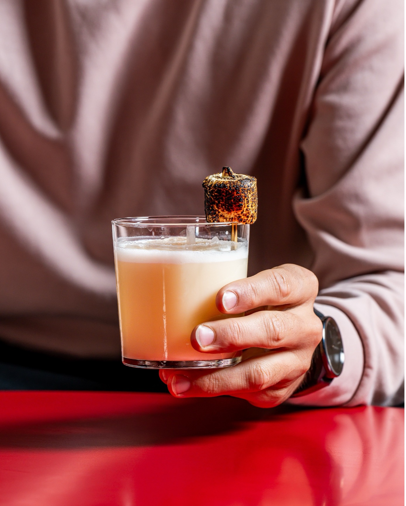 Known for its edible garnishes, the cocktail is finished with truffle oil drizzled over a toasted marshmallow, a pairing widely praised for its perfect harmony with the drink.